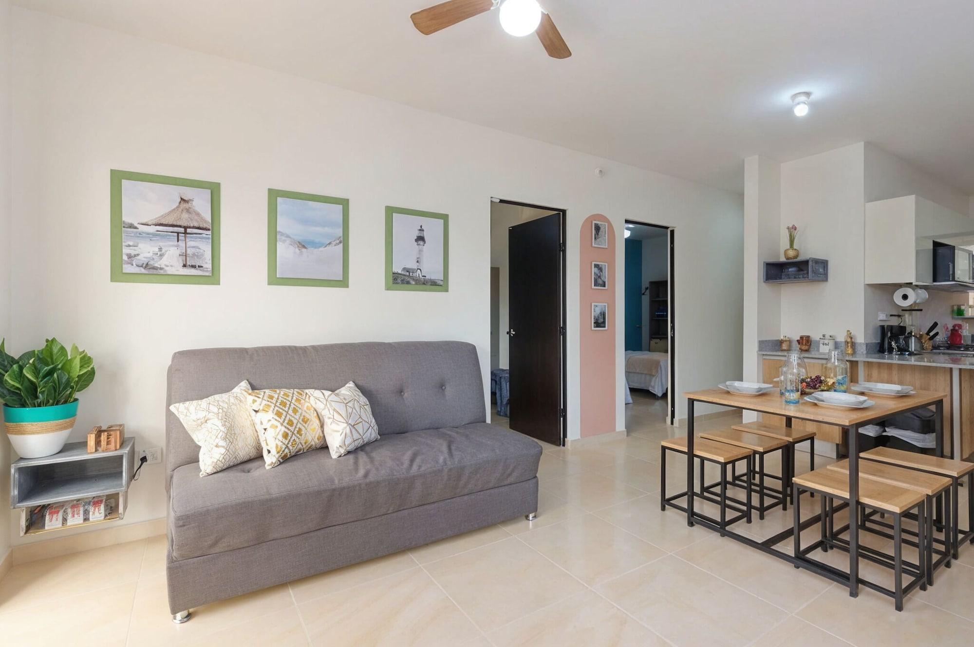 La propiedad está localizada en Cancún. Ofrece piscina infantil, jardín y check-in y check-out express. Se admiten mascotas gratis.Necesitas saber: Zona de fumadoresLas unidades ofrecen aire acondicionado, balcón y lavarropas, así como ropa de cama y piscina privada. Los baños tienen ducha, secador de cabello y accesorios de baño.Cocina en la comodidad de un hogar:Dispondrás de refrigerador, microondas y set de cocina. También, contarás con set para preparar té o café. Algunas opciones poseen cocina.Por un cargo extra, la propiedad cuenta con estacionamiento, servicio de lavandería y traslado al aeropuerto.Con una conveniente ubicación en Cancún, este departamento se encuentra a 15 minutos en auto de Mercado Plaza 28 y Terminal de ferry Ultramar de Puerto Juárez. Hospédate en este departamento y estarás a 16 km de Playa Langosta, así como a 19,4 km de Playa Tortugas.
