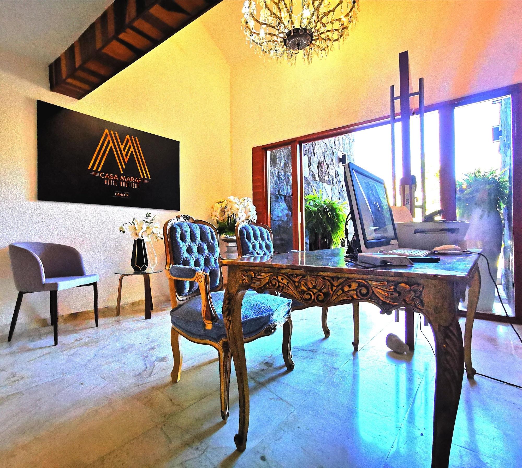 La propiedad se sitúa en Plaza, Cancún. Ofrece estacionamiento gratis, servicio de conserjería y check-in y check-out express.Necesitas saber: Alojamiento / hospedaje solo para adultos Mascotas: no se admiten Propiedad libre de humo Recepción con horario limitadoCocina en la comodidad de un hogar:Algunas opciones poseen cocina.Por un cargo extra, la propiedad cuenta con traslado al aeropuerto.Al reservar tu estadía en Casa Maraf Hotel Boutique - Adults Only, en la zona de Zona Hotelera, en Cancún, te encontrarás a cinco minutos en auto de Parque Nacional Costa Occidental de Isla Mujeres, Punta Cancún y Punta Nizuc y Playa Forum. Hospédate en este hotel y estarás a 5 km de Plaza La Isla, así como a 11,8 km de Playa Delfines.