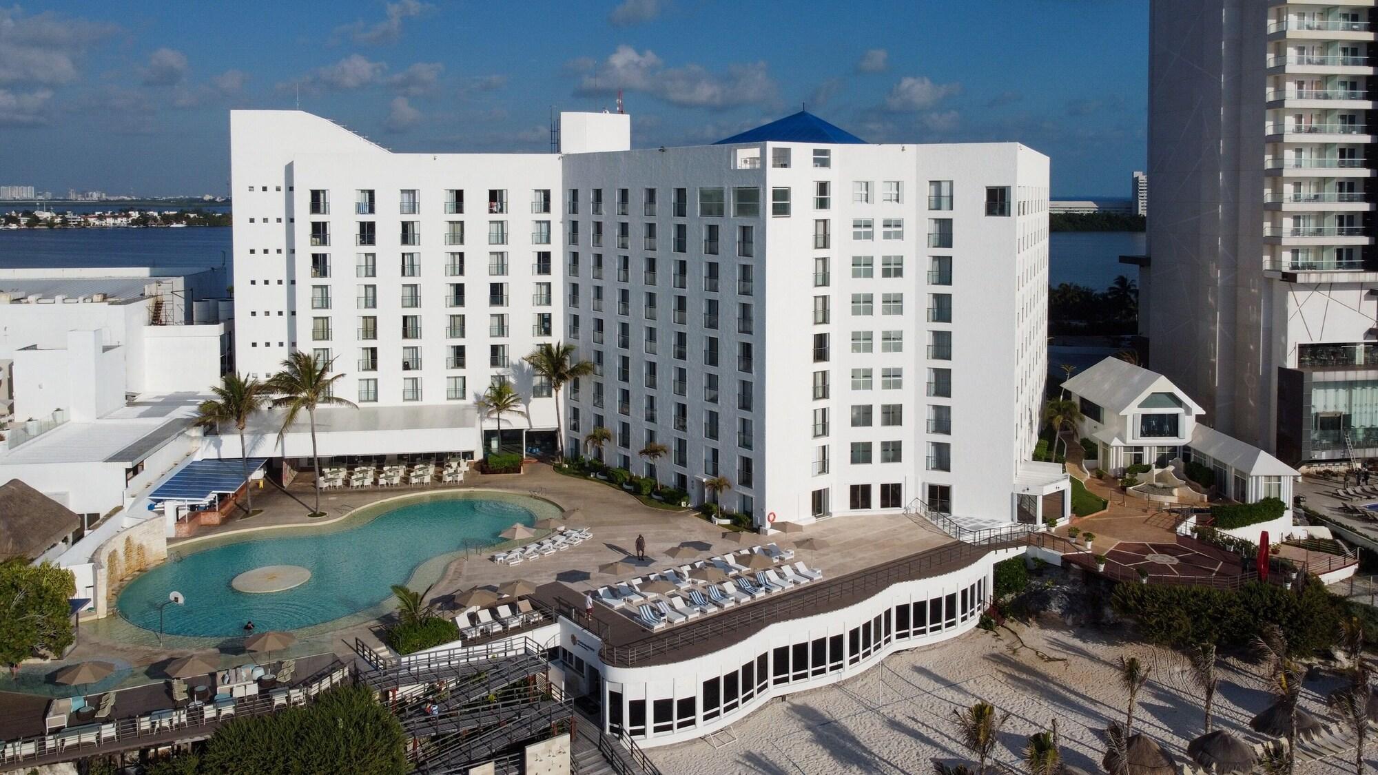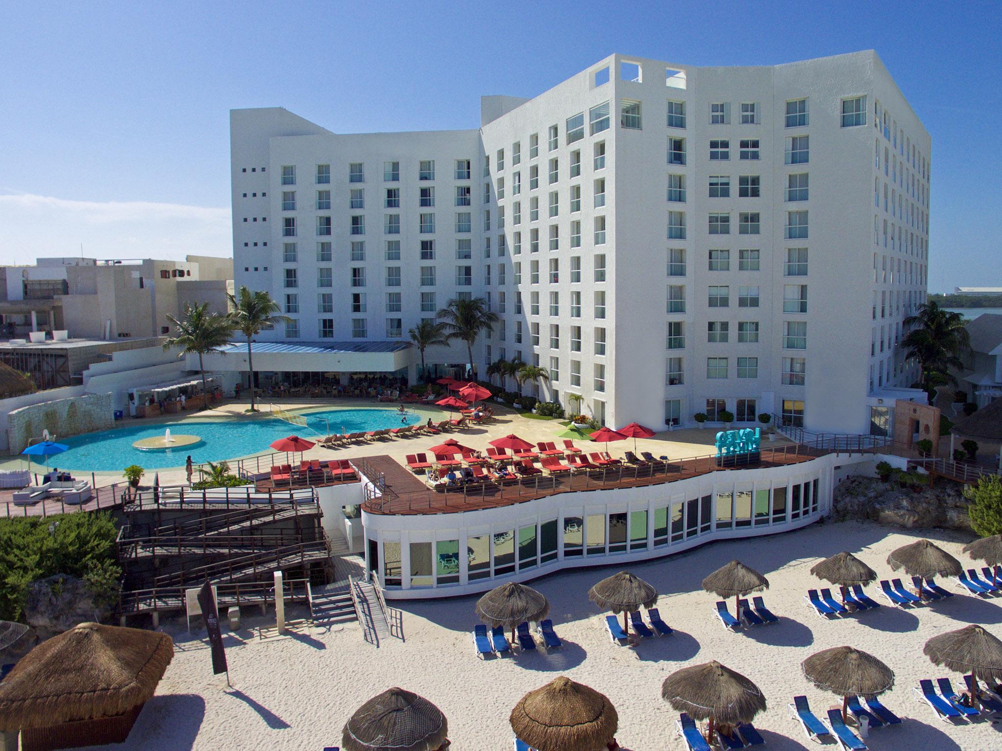 Sunset Royal Beach Resort - All Inclusive se encuentra en Cancún. Ofrece wi-fi gratis en zonas comunes, servicio de spa y sauna, además de estacionamiento gratis.Necesitas saber: Mascotas: no se admiten Caja fuerte en la recepción Propiedad libre de humoEl alojamiento sirve diariamente el desayuno, el cual se ofrece en el bar. También dispone de snack bar.Entre los servicios de la propiedad se encuentran gimnasio, recepción 24 hrs, servicio de niñera y venta de entradas. Los huéspedes también podrán disfrutar de cajero automático y terraza. Por un costo adicional, la propiedad cuenta con servicio de guarda-equipaje y servicio de lavandería.Si reservas tu estadía en Sunset Royal Beach Resort - All Inclusive, en Cancún, en la zona de Zona Hotelera, te encontrarás a 4 minutos a pie de Parque Nacional Costa Occidental de Isla Mujeres, Punta Cancún y Punta Nizuc y a 12 minutos a pie de Playa Forum. Hospédate en esta propiedad todo incluido y estarás a 1,2 km de Centro de Convenciones de Cancún, así como a 2,4 km de Plaza La Isla.