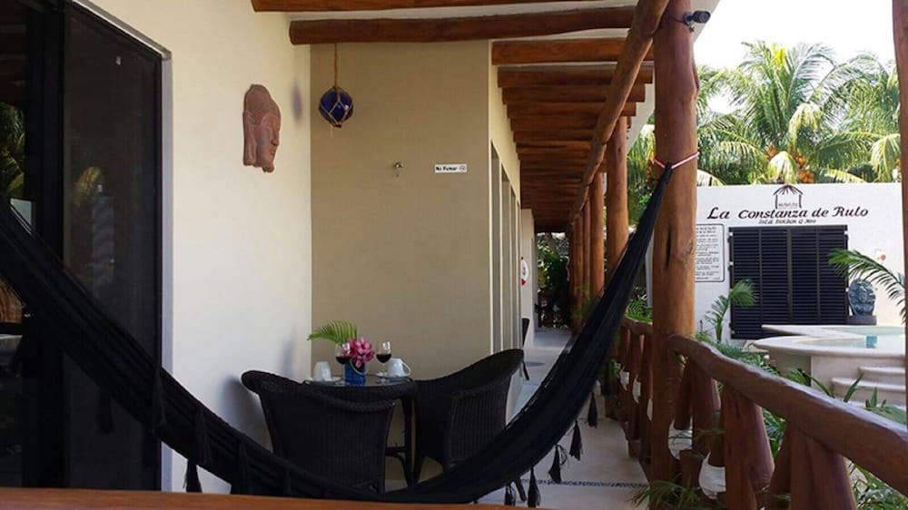 La Constanza de Rulo se sitúa en Isla Holbox. Cuenta con wi-fi gratis en zonas comunes, así como venta de entradas.Necesitas saber: Se admiten mascotas gratis Caja fuerte en la recepción Zona de fumadoresEl establecimiento posee un bar donde podrás degustar las especialidades de la casa.Las comodidades incluyen recepción con horario limitado y servicio de conserjería.Al reservar tu estadía en La Constanza de Rulo, en Holbox, disfrutarás unas vacaciones cerca de la playa, a pocos pasos de Playa Holbox y Plaza principal. Hospédate en este hotel y estarás a 0,1 km de Muelle Tiburón Ballena, así como a 0,1 km de Letrero Letras de Holbox.