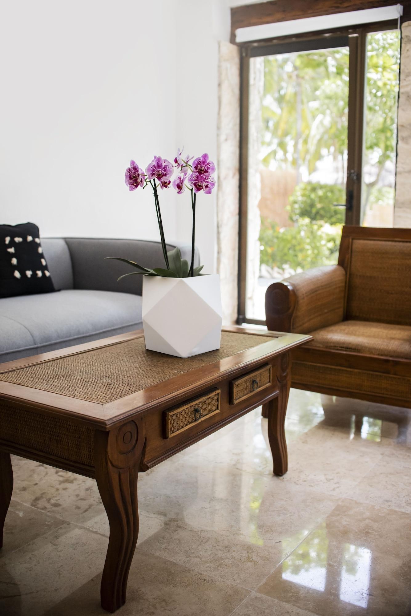 Casa del Jaguar Beach Hotel está localizado en Isla Mujeres. Cuenta con club de playa, wi-fi gratis en zonas comunes y servicio de spa, así como servicio de masajes.Necesitas saber: Acceso a unidades por escaleras Mascotas: no se admiten Caja fuerte en la recepción Propiedad libre de humoEl alojamiento ofrece todos los días el desayuno.Las comodidades incluyen jardín, sillas de playa, toallas para la playa y sombrilla. Los huéspedes también podrán disfrutar de recepción con horario limitado y servicio de conserjería. Por un suplemento, la propiedad cuenta con servicio de guarda-equipaje.Si reservas tu estadía en Casa del Jaguar Beach Hotel, en Isla Mujeres, en la zona de Centro - Supmza. 001, te encontrarás a pocos pasos de Playa Norte y a 12 minutos a pie de Terminal marítima Isla Mujeres. Hospédate en este hotel de playa y estarás a 14,6 km de Terminal de ferry Ultramar de Puerto Juárez, así como a 30,3 km de Plaza La Isla.
