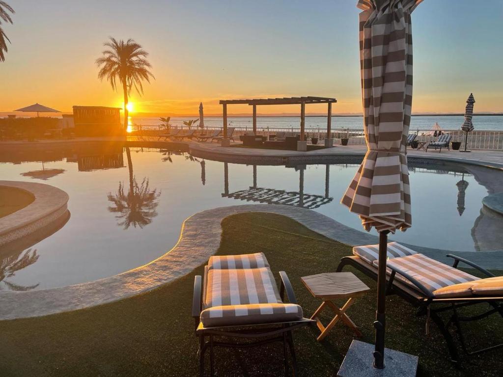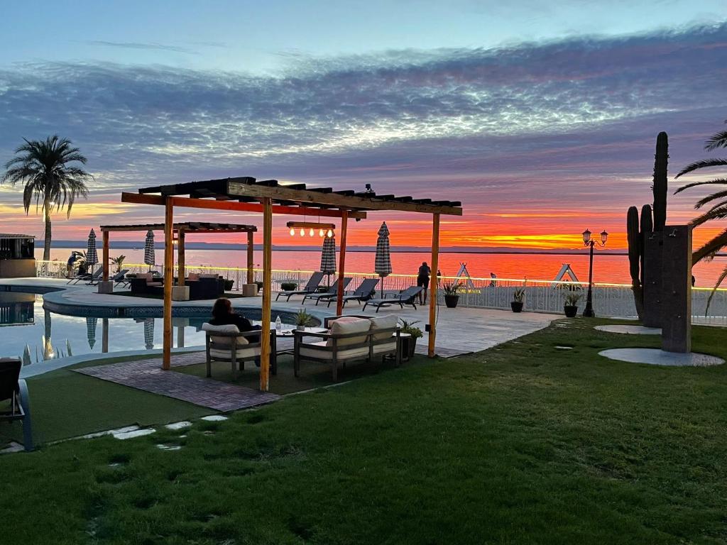 La Posada Hotel & Beach Club está localizado en La Paz. Cuenta con piscina al aire libre de temporada, wi-fi gratis en zonas comunes y servicio de spa, así como servicio de masajes.Necesitas saber: Accesible para personas con movilidad reducida Check-in y check-out express Caja fuerte en la recepción Zona de fumadoresEl establecimiento posee un bar donde podrás degustar las especialidades de la casa. También es posible disfrutar de su snack bar. Los huéspedes podrán cocinar en la comodidad de su alojamiento, en su asador.Entre los servicios de la propiedad se encuentran recepción 24 hrs, piscina infantil, guardería infantil y servicio de niñera. Los huéspedes también podrán disfrutar de recepción de paquetes gratis y venta de entradas. Por un suplemento, la propiedad cuenta con servicio de traslado al aeropuerto, servicio de traslado en los alrededores y servicio de guarda-equipaje.Al reservar tu estadía en La Posada Hotel & Beach Club, en la zona de El Manglito, en La Paz, te encontrarás a cinco minutos en auto de Paseo costero Malecón La Paz y ISSSTE Hospital General La Paz. Hospédate en este resort de playa y estarás a 10,7 km de Playa El Coromuel, así como a 28,2 km de Playa de Balandra.