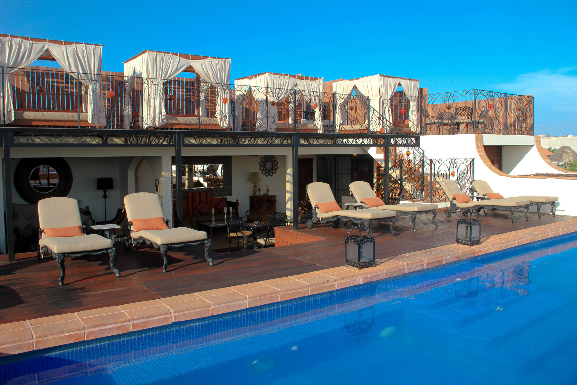 La terraza con piscinas, hidromasajes y camastros es el atractivo principal de La Pasion Hotel Boutique by Bunik, ubicado en el centro de Playa del Carmen.El desayuno se compone de variedad de frutas, fiambres, cereales y jugos. Al atardecer se realiza degustación de vinos con bocadillos dulces y salados, en calidad de cortesía. El restaurante, sirve platos a la carta.Brújula: El muelle de donde salen barcos hacia Cozumel está a 1.5 km del hotel. A 5 minutos caminando del Mar Caribe y de la Quinta Avenida. En auto, La Pasion Hotel Boutique by Bunik se encuentra a 10 minutos del Parque Xcaret, a 30 minutos de las Ruinas de Tulum y a 45 minutos del Aeropuerto Internacional de Cancún.