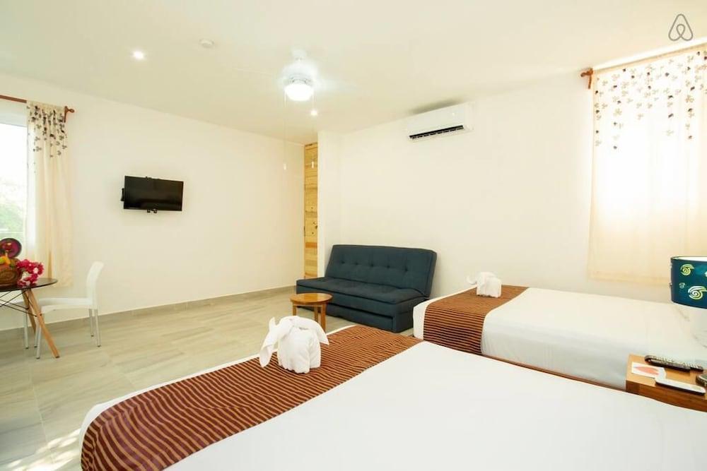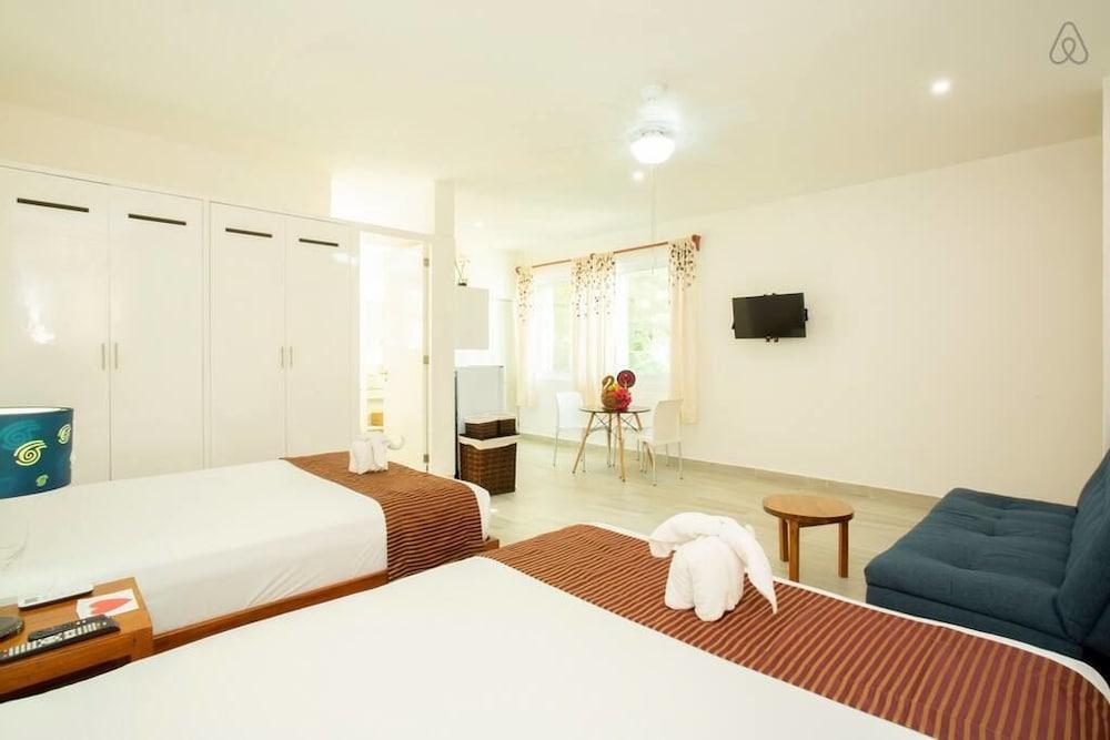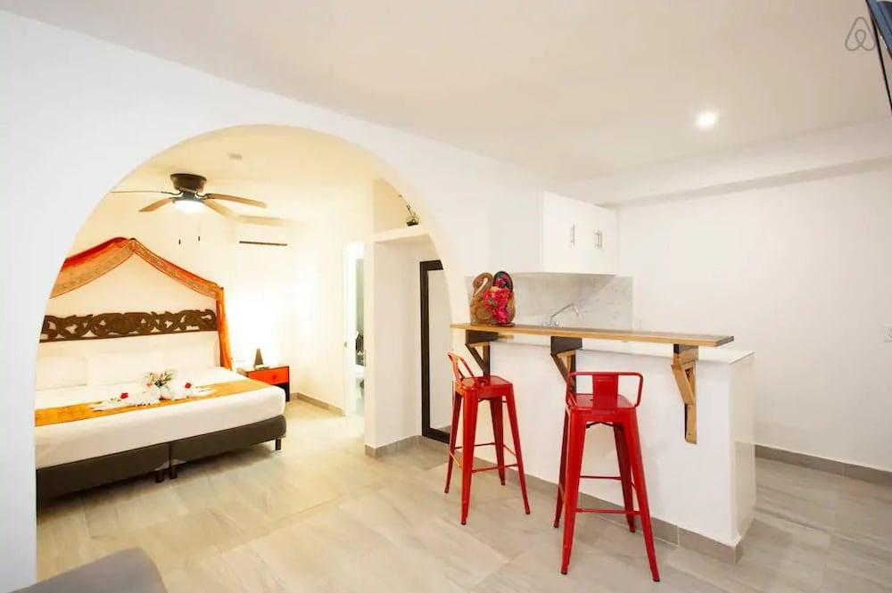 Ocean Zen Suites on 5th Avenue - Adults Only se encuentra en Playa del Carmen. Ofrece wi-fi gratis en zonas comunes, recepción 24 hrs y zona de picnic, así como terraza.Necesitas saber: Alojamiento / hospedaje solo para adultos Acceso a unidades por escaleras Check-in y check-out express Mascotas: no se admitenLos huéspedes podrán cocinar en la comodidad de su alojamiento, en su asador.Entre los servicios de la propiedad se encuentran jardín, toallas para la playa y servicio de conserjería. Por un cargo, la propiedad cuenta con servicio de guarda-equipaje y servicio de lavandería.Tendrás una ubicación céntrica en Playa del Carmen al reservar tu estadía en Ocean Zen Suites on 5th Avenue - Adults Only, que se encuentra a 15 minutos a pie de Playa Mamitas y Playa Punta Esmeralda. Hospédate en este hotel y estarás a 1,6 km de Quinta Avenida, así como a 2 km de Centro comercial Quinta Alegría.