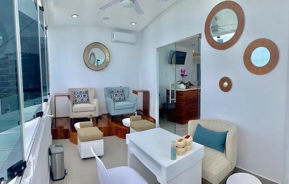 Almar Resort Luxury LGBT Beach Front Experience se encuentra en Puerto Vallarta. Cuenta con wi-fi gratis en zonas comunes, servicio de spa y gimnasio, así como recepción 24 hrs.Necesitas saber: Alojamiento / hospedaje solo para adultos Mascotas: no se admiten Caja fuerte en la recepciónEl alojamiento sirve diariamente el desayuno con costo adicional, el cual se ofrece en el bar.Las comodidades incluyen venta de entradas, terraza, ascensor y sillas de playa. Los huéspedes también podrán disfrutar de toallas para la playa y sombrilla. Por un costo adicional, la propiedad cuenta con servicio de traslado al aeropuerto, servicio de guarda-equipaje y servicio de lavandería.Si reservas tu estadía en Almar Resort Luxury LGBT Beach Front Experience, te encontrarás en el corazón de Puerto Vallarta, a pocos pasos de Bahía de Banderas y a 3 minutos en auto de Malecón. Hospédate en este apart-hotel de playa y estarás a 7,8 km de Terminal de cruceros, así como a 8,7 km de Playa las Gemelas.