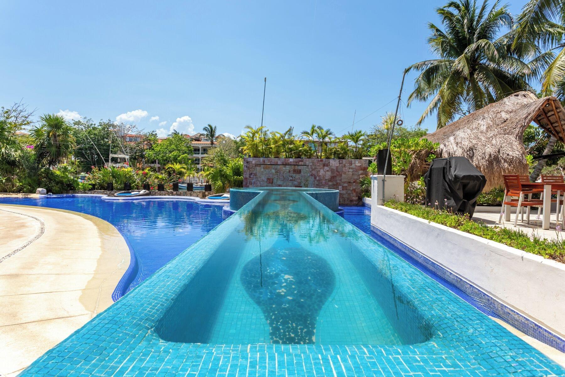 Ubicada en la playa, la propiedad se encuentra en Puerto Aventuras. Dispone de estacionamiento limitado gratis, piscina infantil y asador, además de sombrilla y jardín.Necesitas saber: Mascotas: no se admiten Propiedad libre de humoCocina en la comodidad de un hogar:Algunas opciones poseen cocina, cocina americana y refrigerador.Entre las comodidades se destacan servicio de conserjería, ascensor y caja fuerte en la recepción. También podrán disfrutar de zona de picnic y check-in y check-out express. Por un cargo extra, la propiedad cuenta con servicio de lavandería, guardaequipajes y traslado al aeropuerto.Al reservar tu estadía en Aventuras Club, tendrás una ubicación céntrica en Puerto Aventuras, a 1 minutos en auto de Marina de Puerto Aventuras y a 6 minutos de Ecopark Kantun Chi. Hospédate en este apart-hotel de playa y estarás a 11 km de Playa Xpu-ha, así como a 15,8 km de Parque temático Xplor.