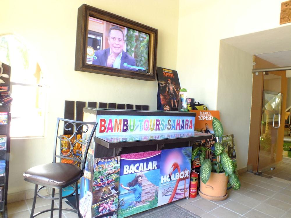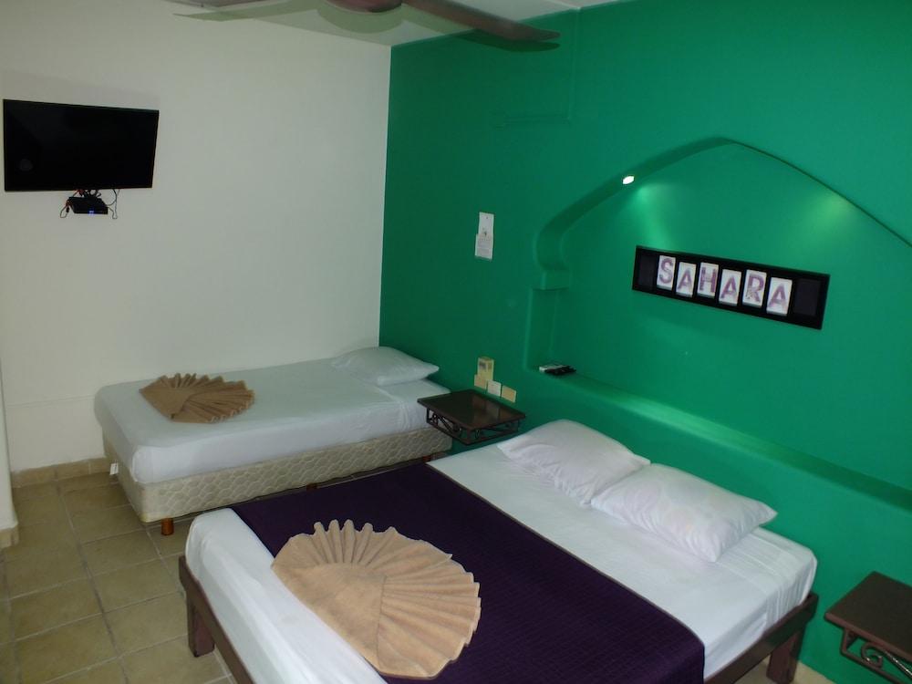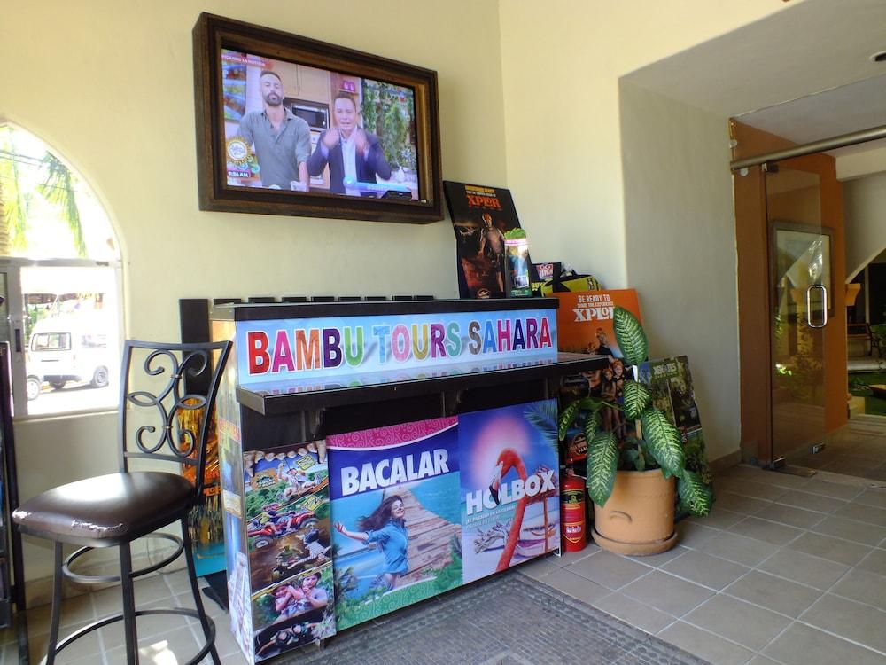Sahara Hotel se encuentra en Playa del Carmen. Ofrece casino, wi-fi gratis en zonas comunes y recepción 24 hrs, así como piscina infantil.Necesitas saber: Mascotas: no se admiten Caja fuerte en la recepción Zona de fumadoresEl alojamiento sirve diariamente el desayuno con costo adicional, el cual se ofrece en el snack bar.Entre los servicios de la propiedad se encuentran venta de entradas, cajero automático, terraza y jardín. Los huéspedes también podrán disfrutar de servicio de conserjería. Por un cargo, la propiedad cuenta con servicio de traslado al aeropuerto, servicio de traslado en los alrededores y estacionamiento limitado.Con una conveniente ubicación en la zona de Centro de la ciudad de Playa del Carmen, en Playa del Carmen, Sahara Hotel se encuentra a 3 minutos a pie de Quinta Avenida y a 10 minutos a pie de Terminal marítima de Playa del Carmen. Hospédate en este hotel con casino y estarás a 1,1 km de Playa Mamitas, así como a 8,8 km de Parque temático Xplor.